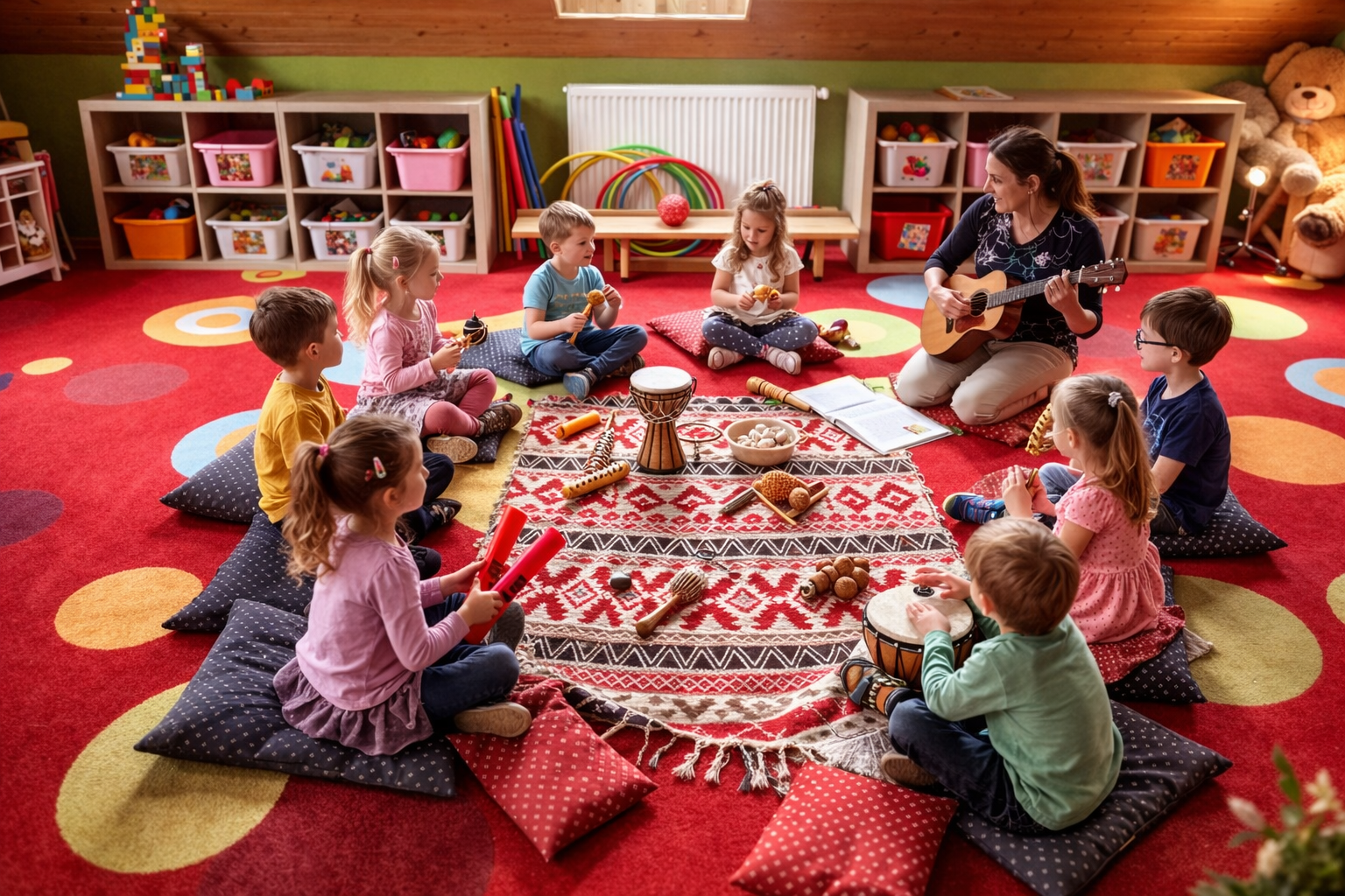 Zvuky a melodie pomáhají vyjadřovat emoce, uvolňovat napětí a navazovat kontakt s okolím bezpečným a hravým způsobem.